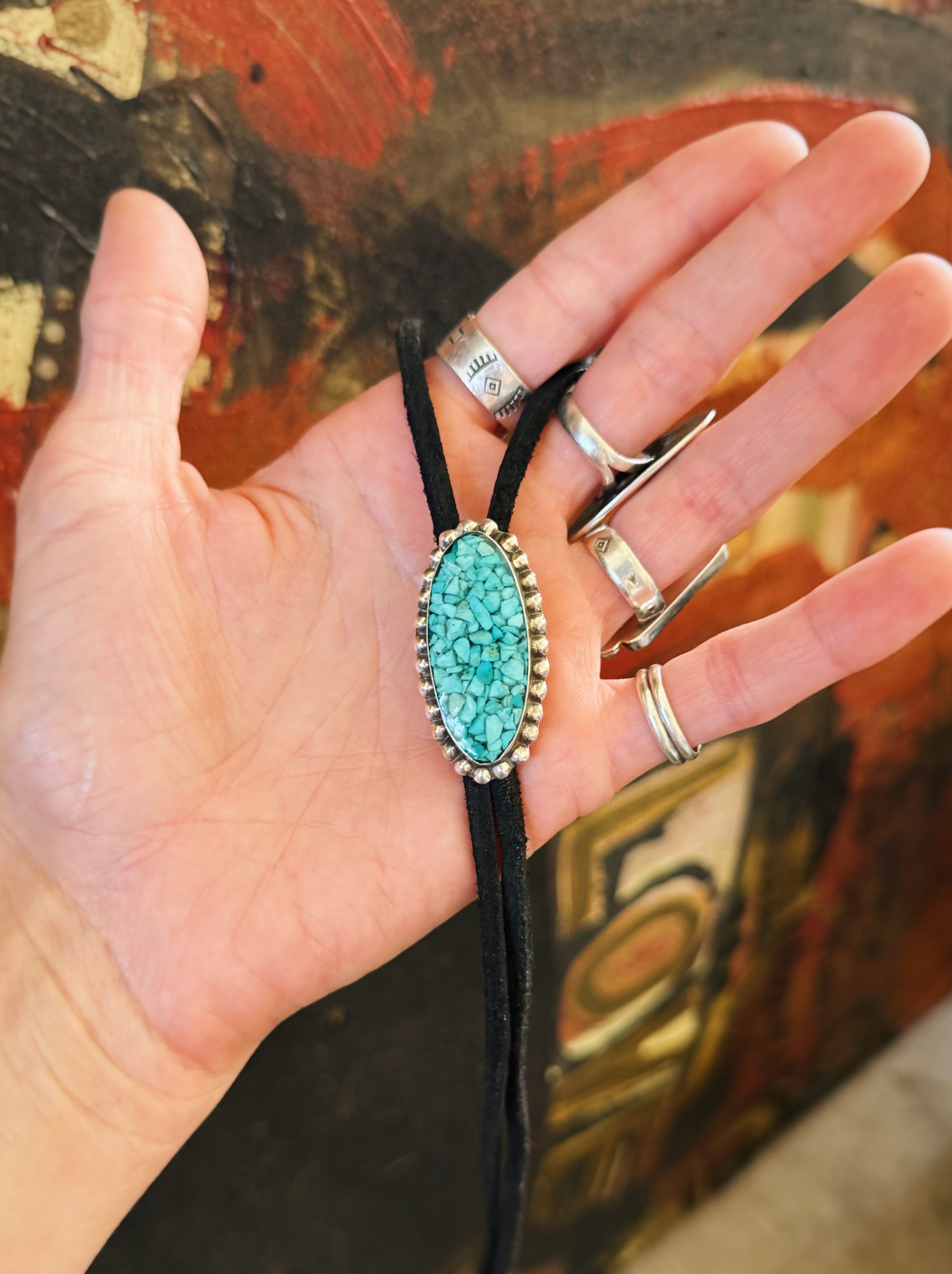 CRUSHED TURQUOISE BOLO TIE